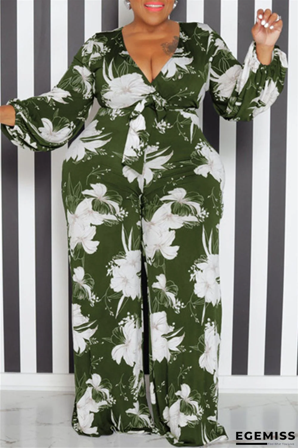 | Product Name | Army Green Casual Print Patchwork V Neck Plus Size Jumpsuits |