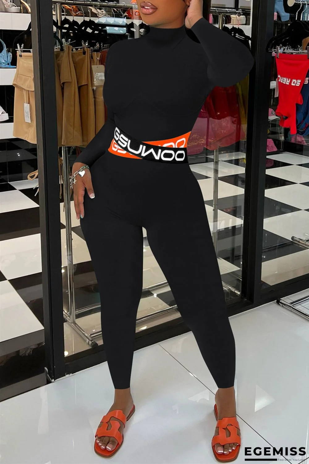 | Product Name | Black Casual Letter Print Patchwork Turtleneck Skinny Jumpsuits |