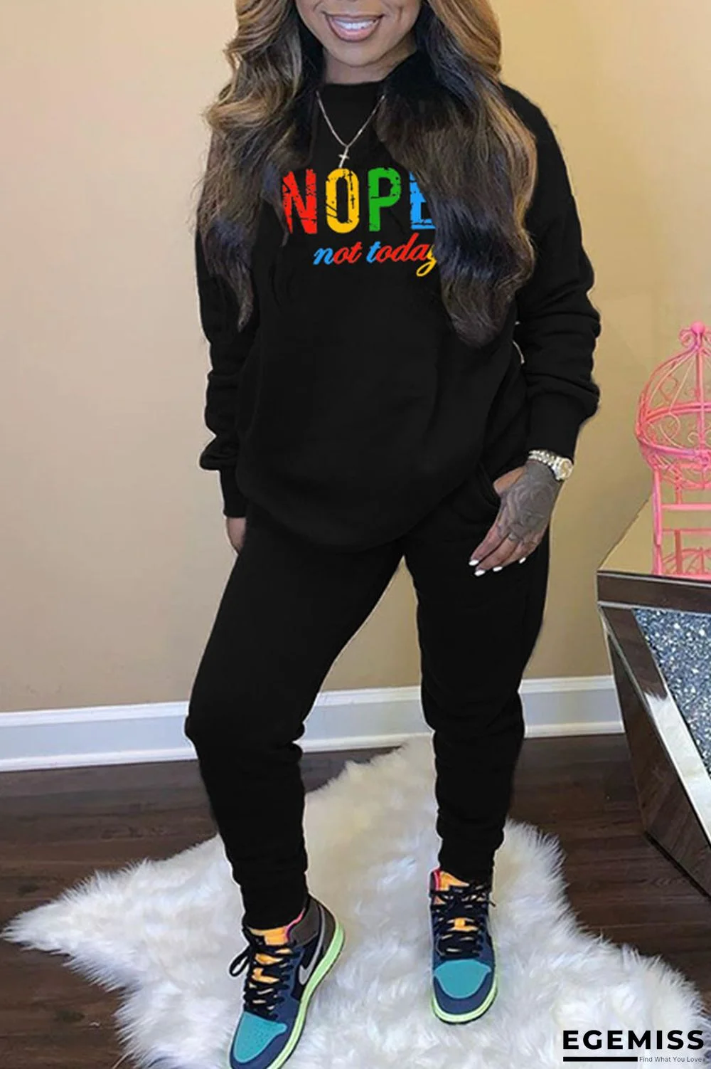 | Product Name | Black Casual Print Patchwork O Neck Long Sleeve Two Pieces |