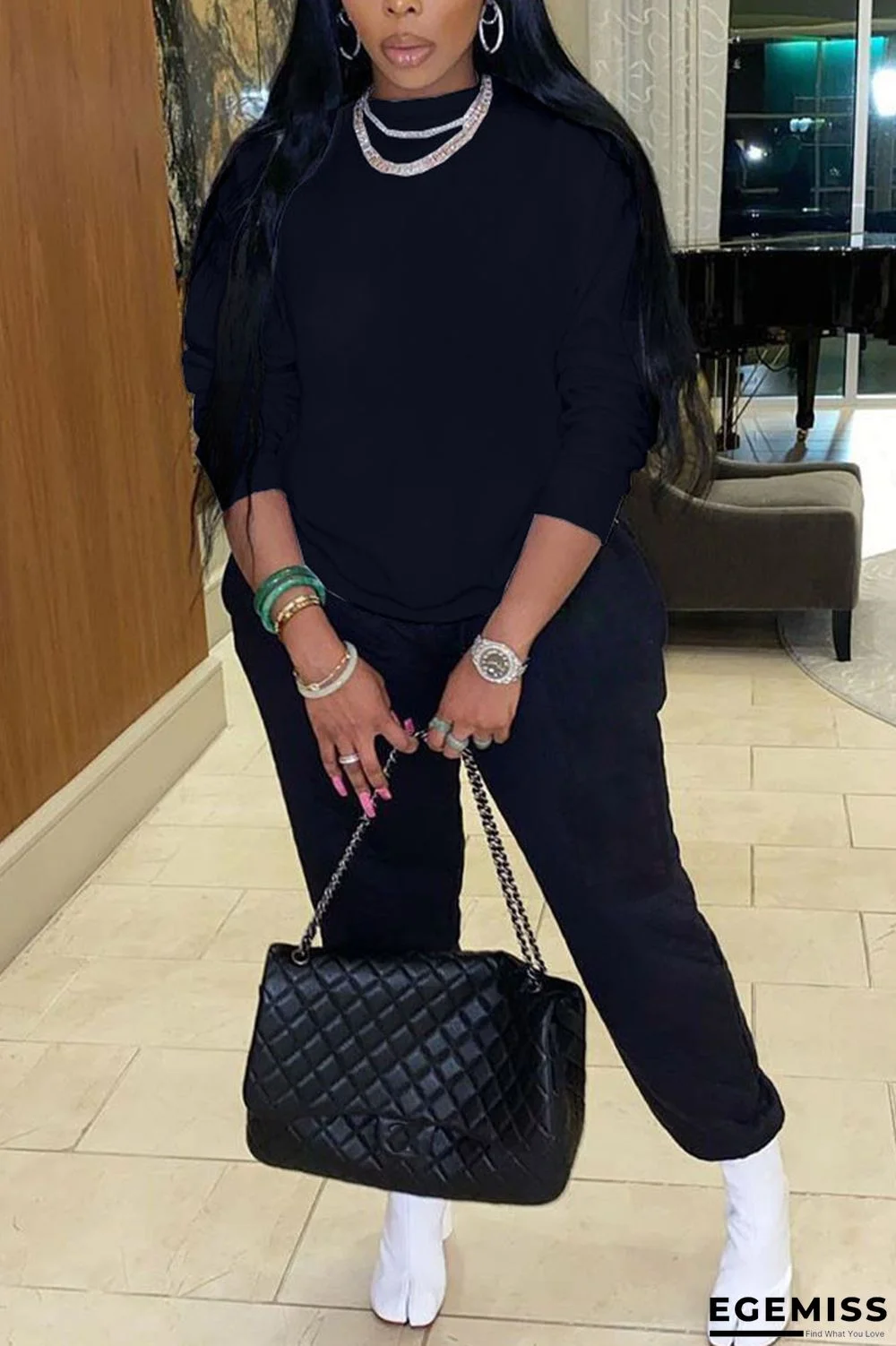 | Product Name | Black Casual Solid O Neck Long Sleeve Two Pieces |