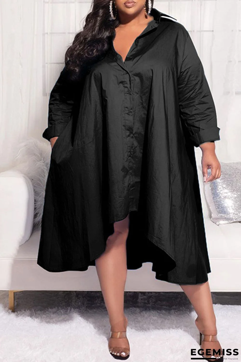 | Product Name | Black Casual Solid Patchwork Buckle Asymmetrical Turndown Collar Shirt Dress Plus Size Dresses |