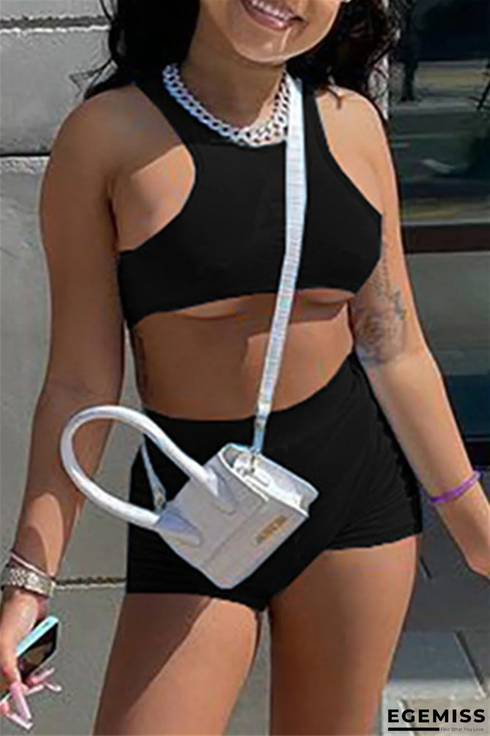 | Product Name | Black Casual Sportswear Solid Basic O Neck Sleeveless Two Pieces |