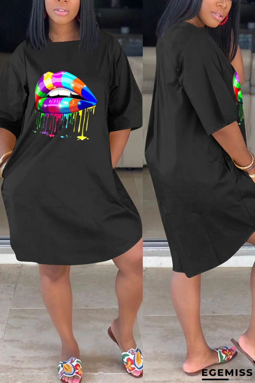 | Product Name | Black Fashion Casual Lips Print Loose Dress |
