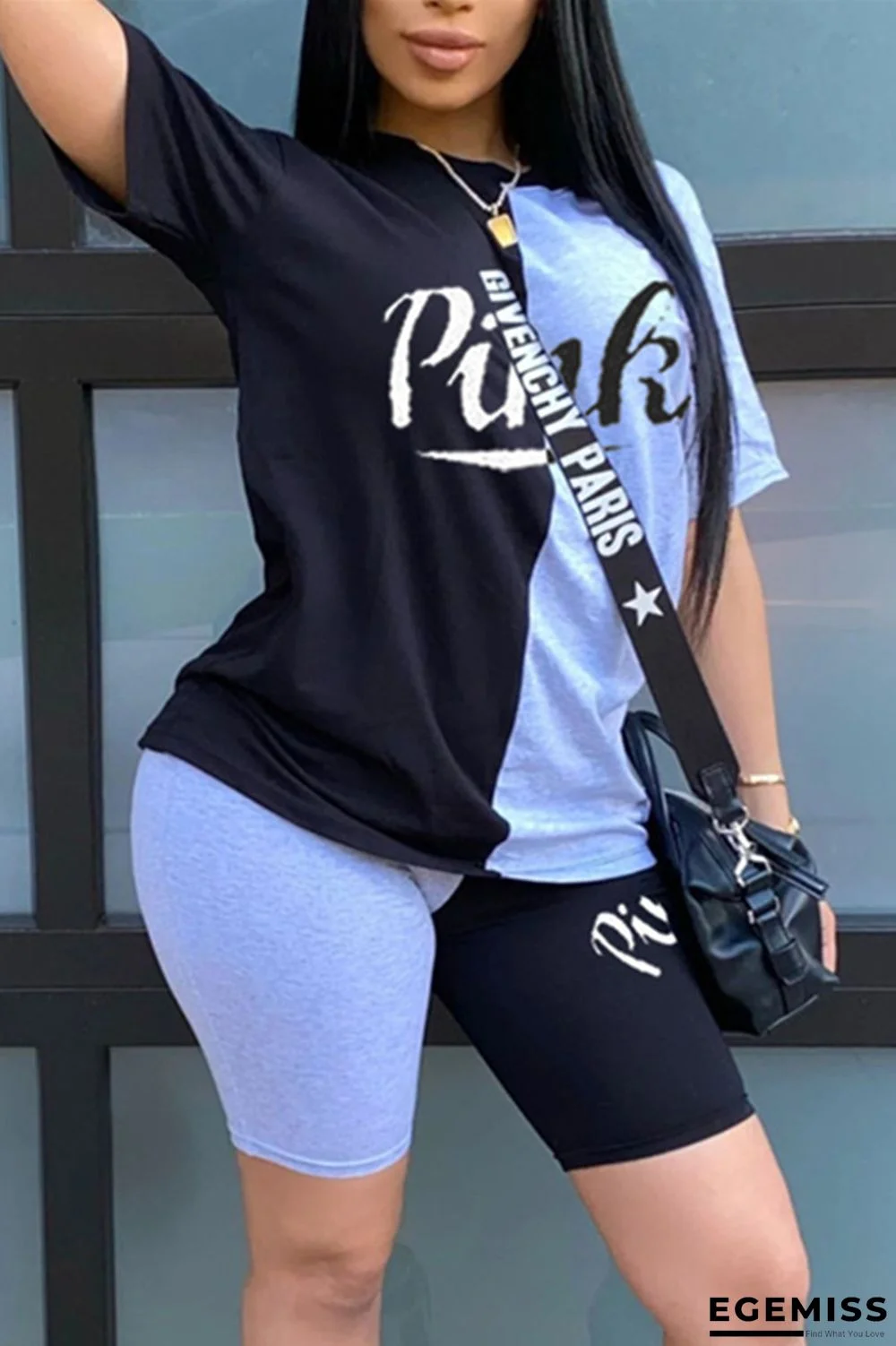 | Product Name | Black Fashion Casual Printed Short Sleeve Top Shorts Set |