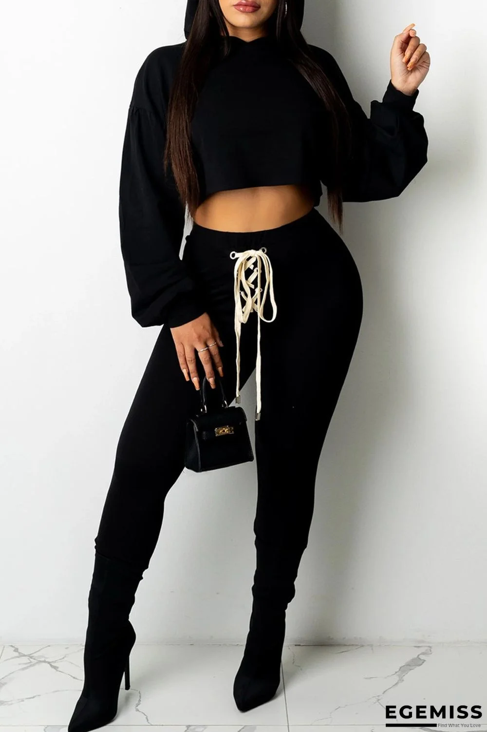 | Product Name | Black Fashion Casual Solid Basic Hooded Collar Long Sleeve Two Pieces |