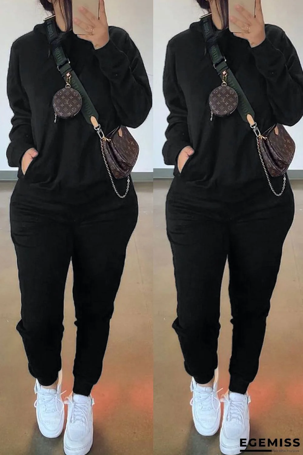 | Product Name | Black Fashion Casual Solid Basic Hooded Collar Long Sleeve Two Pieces |