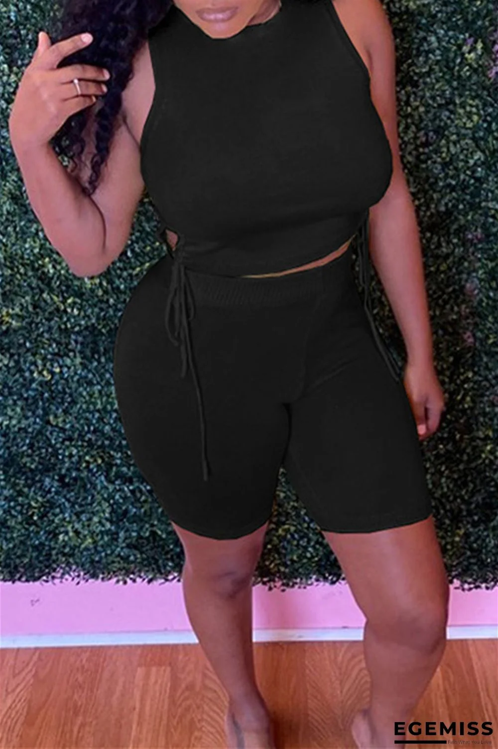 | Product Name | Black Sexy Casual Solid Backless Strap Design O Neck Sleeveless Two Pieces |