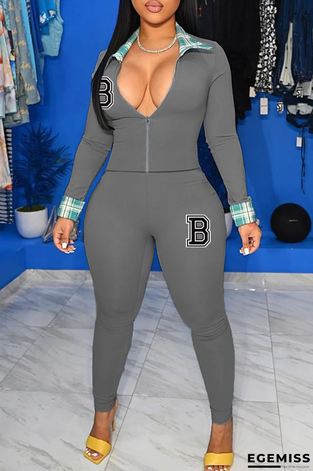 | Product Name | Grey Casual Print Patchwork Turndown Collar Long Sleeve Two Pieces |