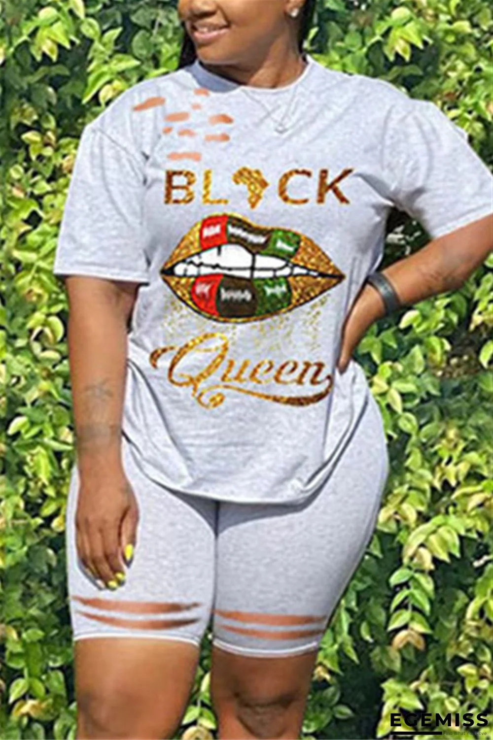 | Product Name | White Fashion Casual adult Letter Patchwork Print Hole Burn-out Two Piece Suits Lips Print Straight Short Sleeve Two Pieces |