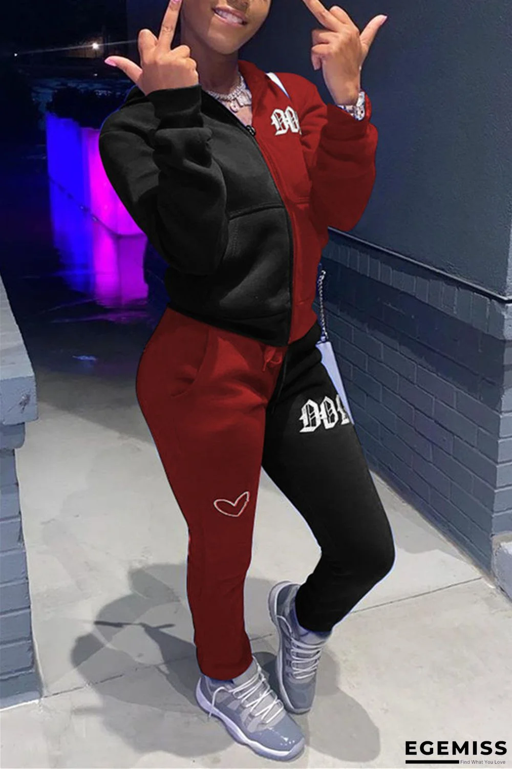 | Product Name | Wine Red Fashion Casual Adult Patchwork Print Embroidered Patchwork Hooded Collar Long Sleeve Regular Sleeve Regular Two Pieces |