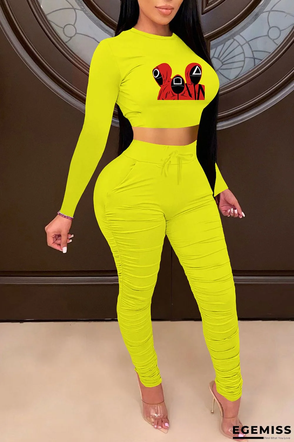 | Product Name | Yellow Casual Print Patchwork Fold O Neck Long Sleeve Two Pieces |
