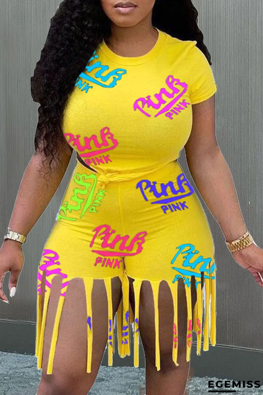 | Product Name | Yellow Casual Print Tassel Patchwork O Neck Short Sleeve Two Pieces |