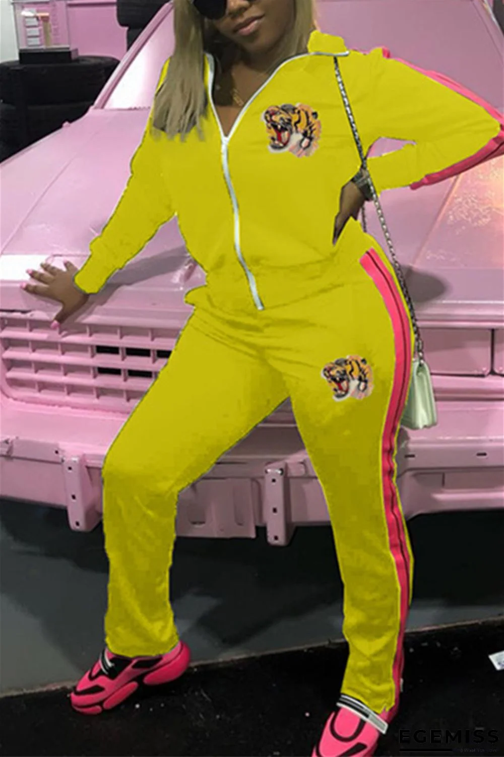 | Product Name | Yellow Casual Two Piece Suits Animal Prints Embroidery Straight Long Sleeve |
