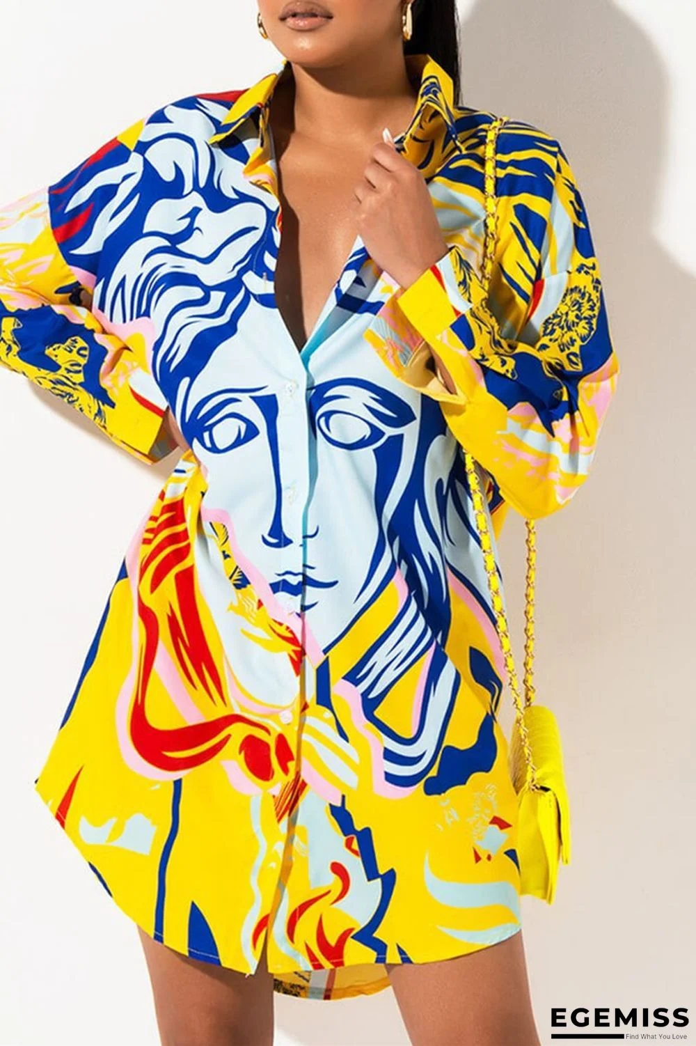 | Product Name | Yellow Fashion Casual Print Basic Turndown Collar Shirt Dress (Without Belt) |