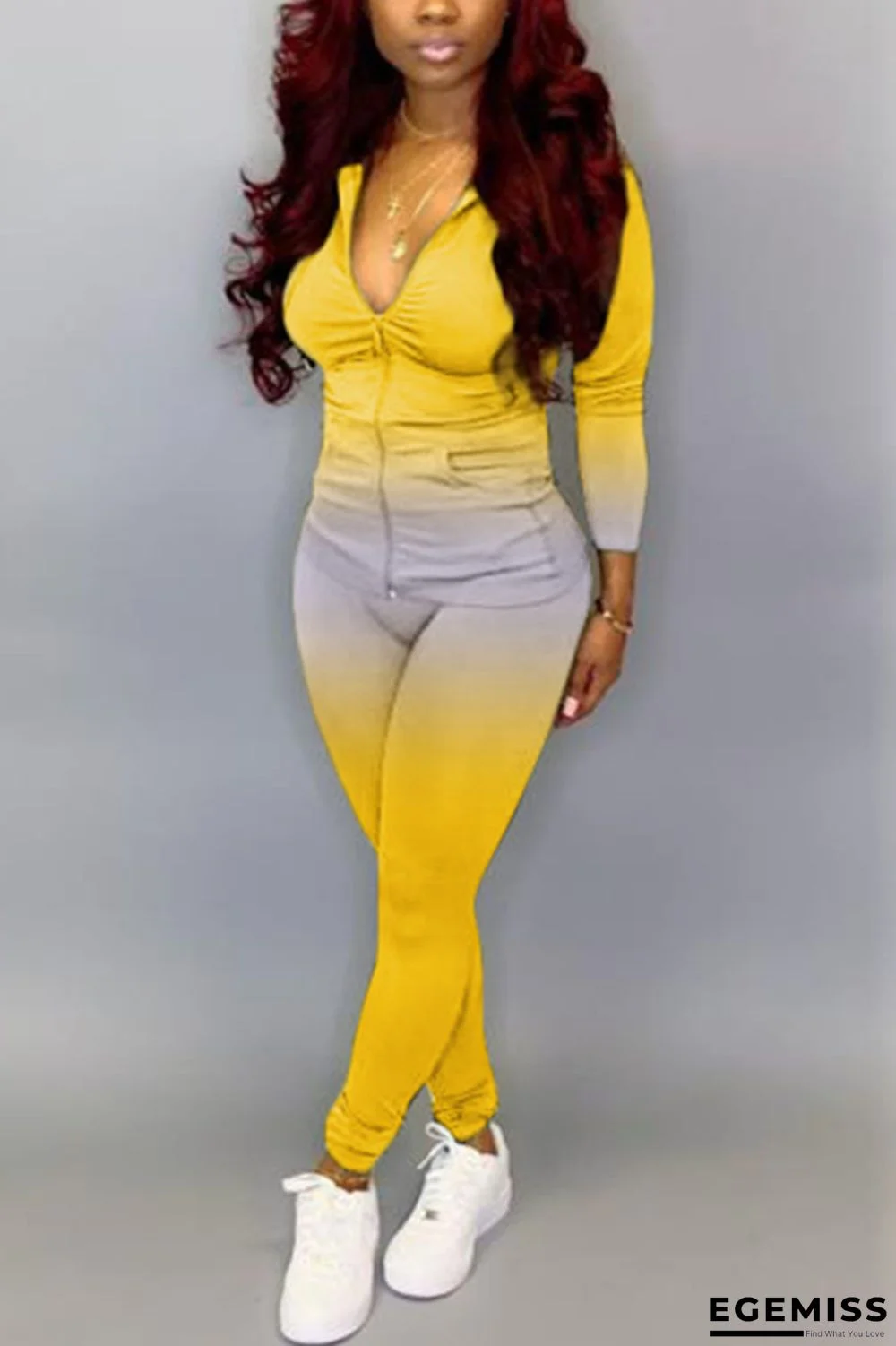 | Product Name | Yellow Fashion Long Sleeve Hooded Collar Regular Sleeve Regular Gradual Change Print Two Pieces |