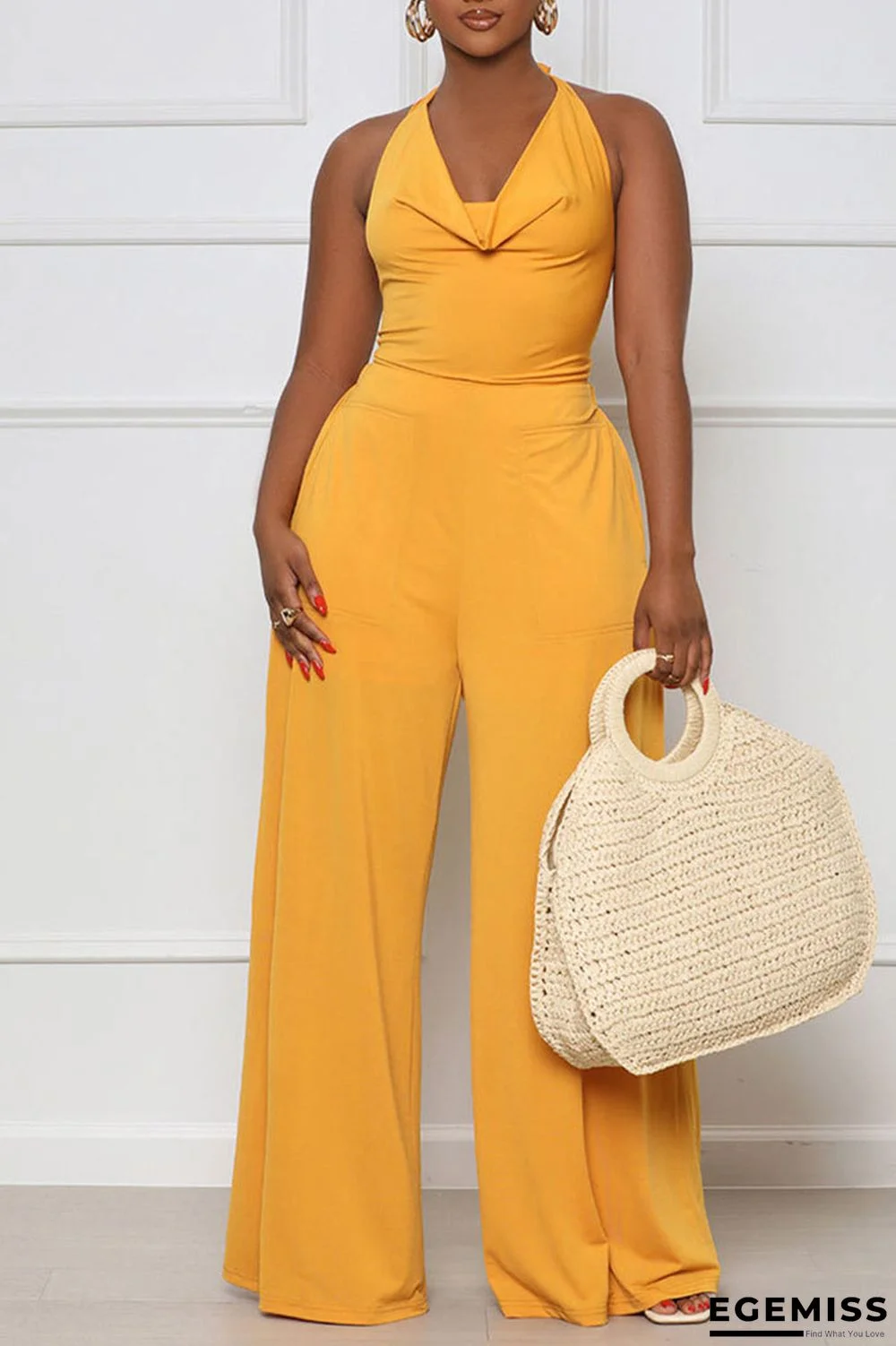 | Product Name | Yellow Sexy Solid Bandage Patchwork Backless Straight Jumpsuits |