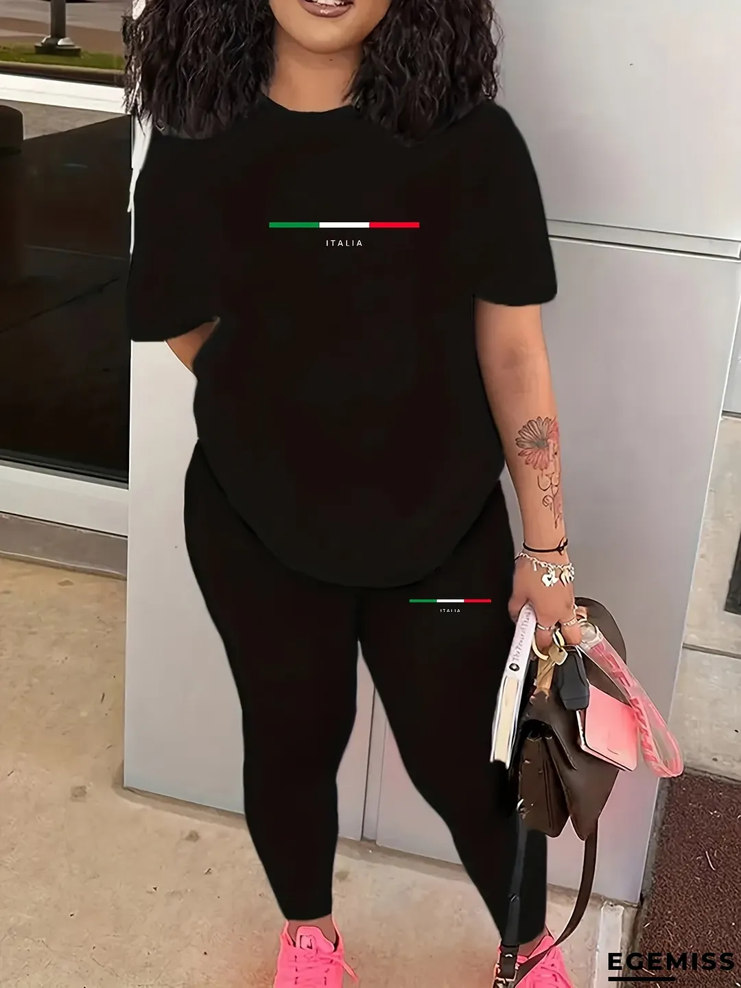 Printed Pattern Set, Casual Short Sleeve Round Neck T-Shirt and Pants Two-Piece Outfit for Women