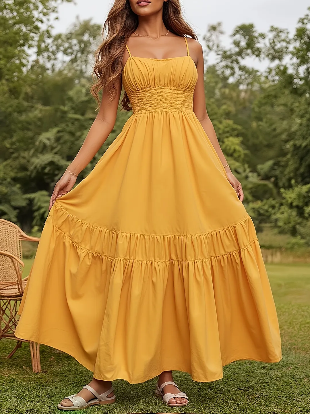 Summer New Pleated Waist Design Sense Of Large Hem Princess Halter Dresses