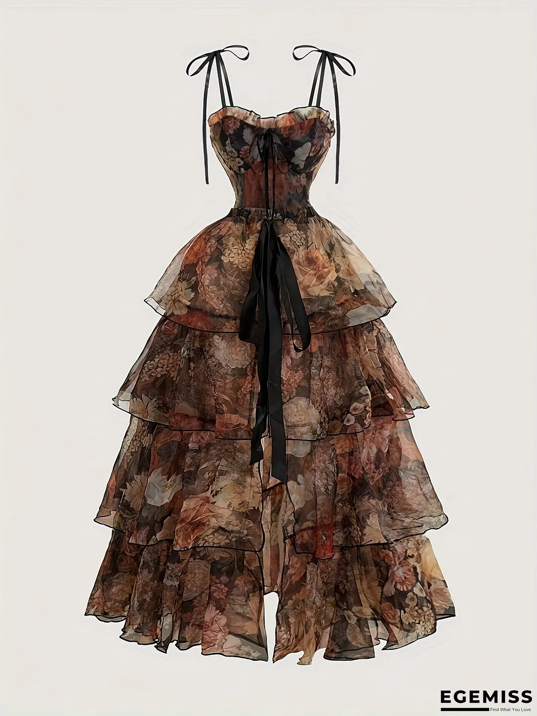 [Vintage Floral Dress Set] Vintage Floral Print Dress Set - Detachable Layered Skirt, Court Style, Birthday Gown, Cruise Attire, Overlay Dress, Women's Summer Evening Wear, Tea Party Dress, Ruffled Ensemble