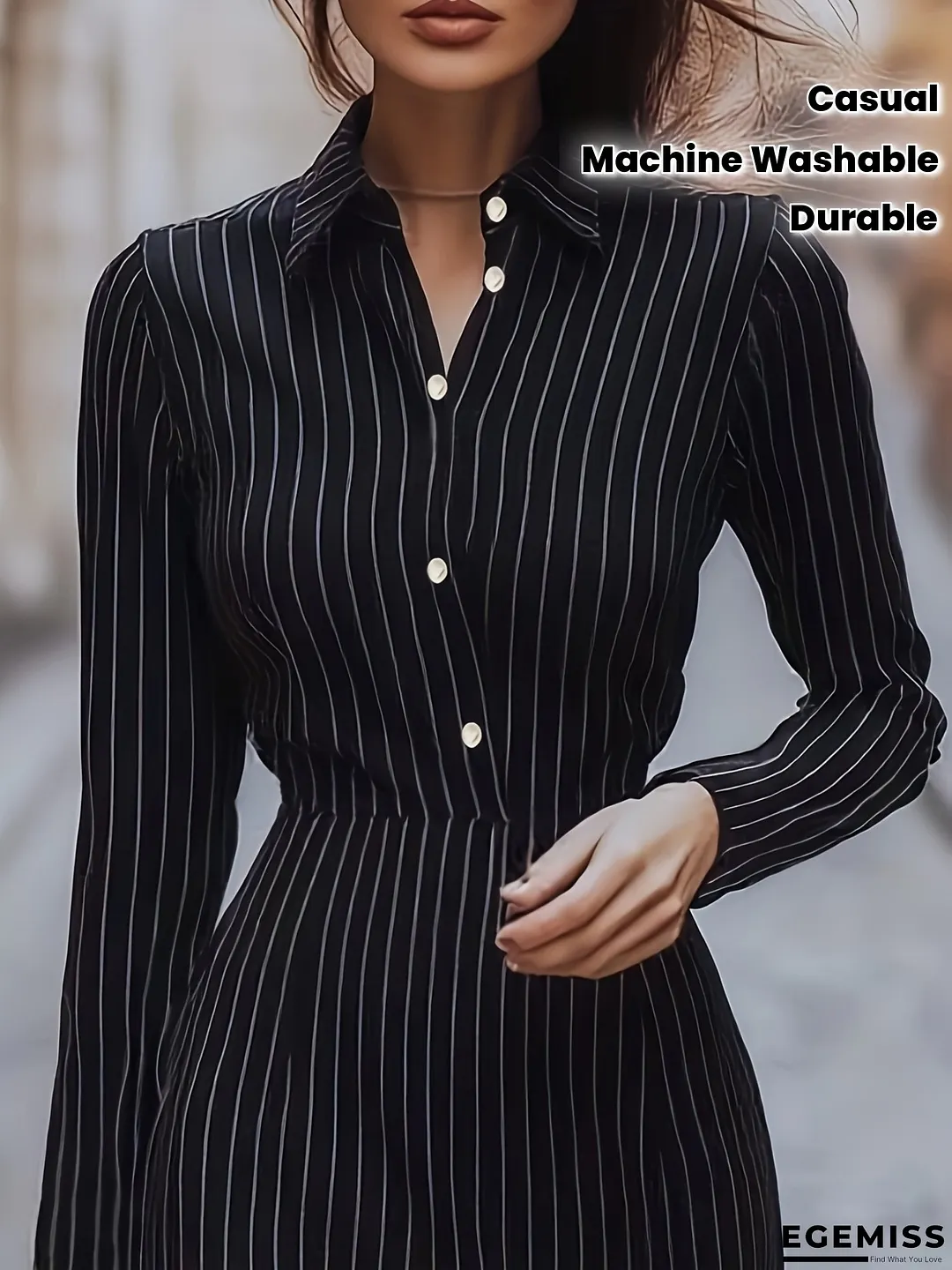 [Elegant Long Sleeve Dress] Flattering Fit, Women's Elegant Long Sleeve Formal & Casual Dress - Button-Front Design, Machine Washable Chic Outfit, Office Attire, Classic Collar, Durable Material, Fashion Lovers
