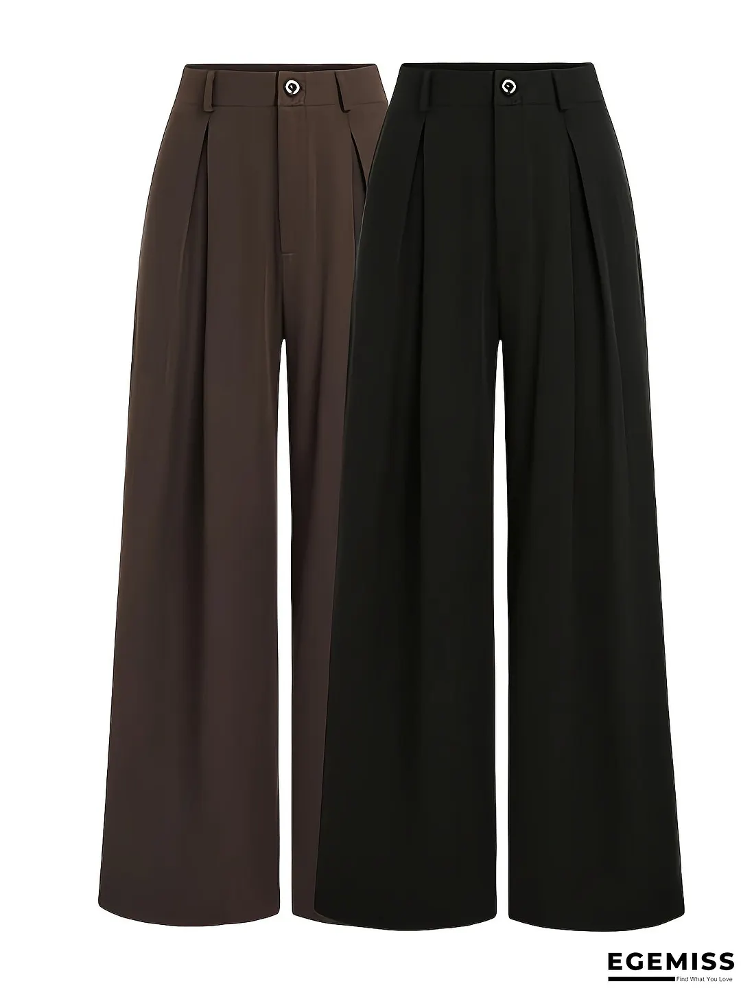 Women's Elegant Wide-Leg Pants - Two-Piece Set, Brown & Black, Structured Formal & Everyday Trousers For Office, Events, Casual Outfits - All-Season Elegant Legwear, Event Attire, Highwaisted Design, Durable Fabric