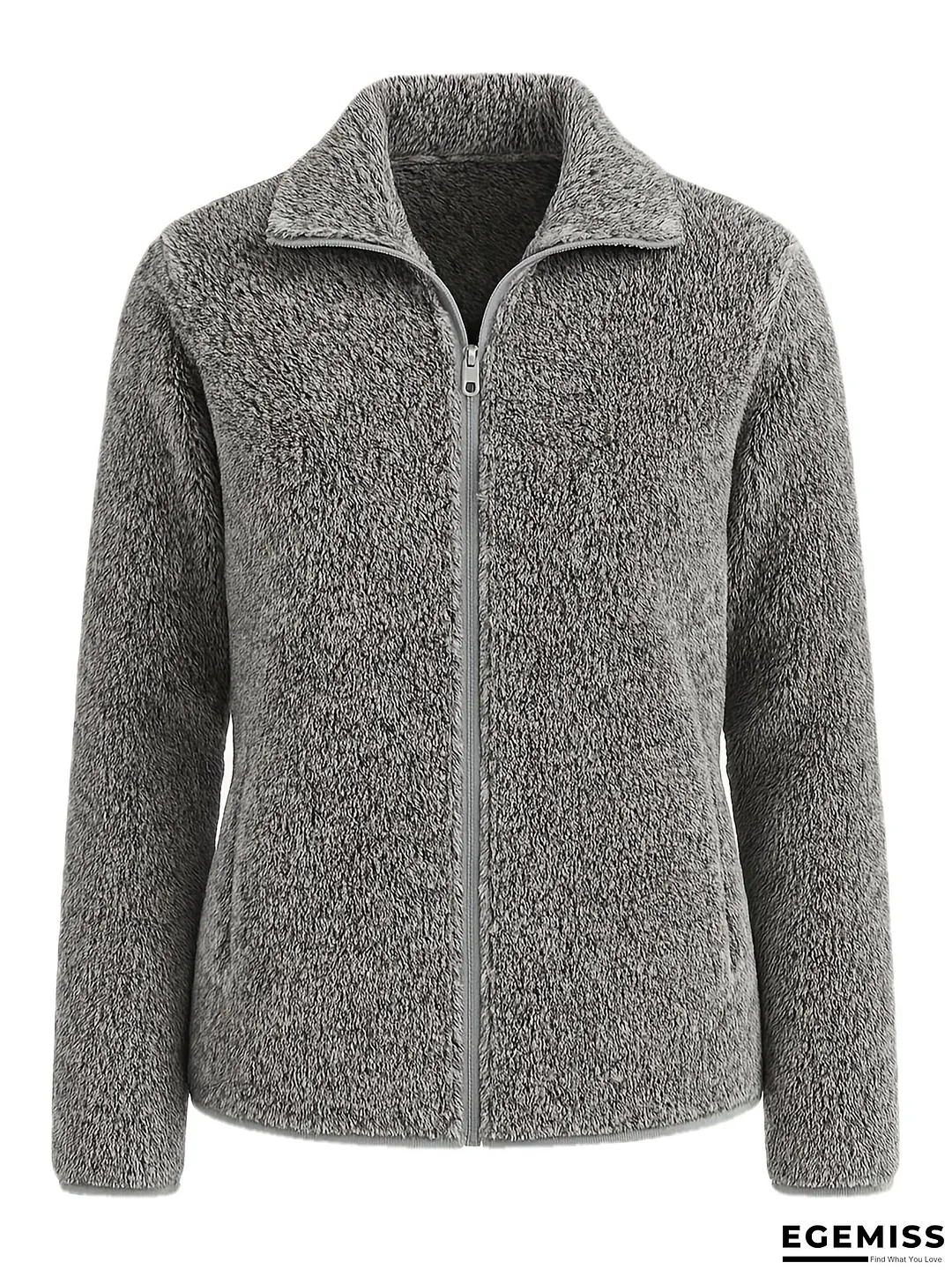 Women's Long Plush Jacket - Full-Zip Closure Outerwear, Non-Stretchy Warm Coat for Winter, Machine Washable Cold Weather Jacket for Everyday & Formal Outfits, Casual Winter Wear, Hline Silhouette, Zipper Front Closure