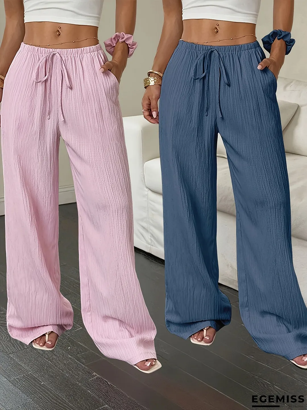 Women's Solid Color Waist Pocket Wide Leg Long Trousers Two-Pack