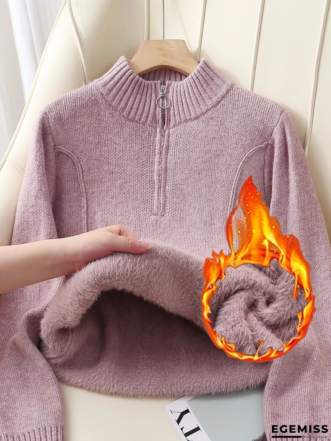 Women's Thermal Fleece Half-Zip Sweater - Full-Zip Front Zipper & Fleece Lining, Thickened Winter Coat, All-Season Casual Outerwear, /Beige, Hand Washable, Comfortable Layering Piece for Fall and Winter, Relaxed Fit with High Neckline and Full-Length Zipper, Soft Fleece Lining for Extra Warmth, Solid Color Design, Suitable for Casual Attire, Sweaters for Women Winter, Colourfull Loose Sweater for Women, Sweaters, Winter Top for Women, Oversized Sweater